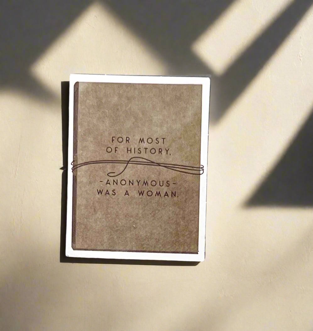 Pay homage to the countless unsung women throughout history with our thought-provoking "For Most of History, Anonymous Was A Woman" sticker. This impactful quote, presented with a delicate string detail, serves as a powerful reminder of the historical silencing of women's voices and contributions.