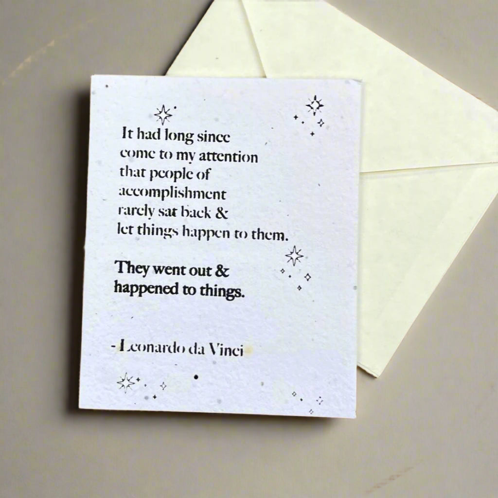 "It had long since come to my attention that people of accomplishment rarely sat back and let things happen to them. They went out and happened to things. Leonardo Da Vinci"