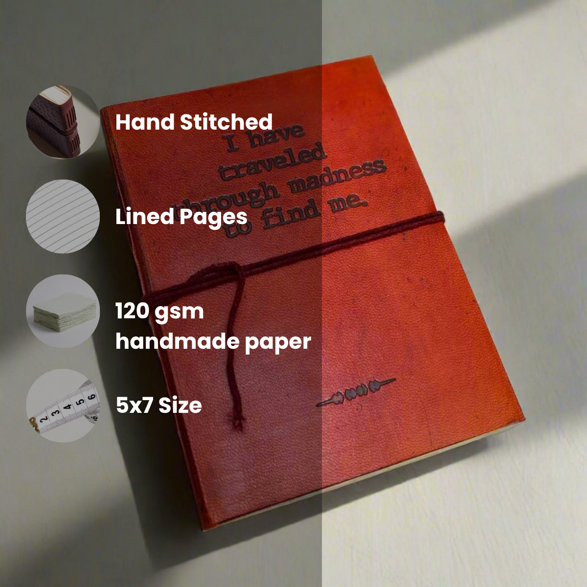 Journaling is the best therapy. Get this Leather Bound Journal embossed with the quote “I have traveled through madness to find me," and write it all down.