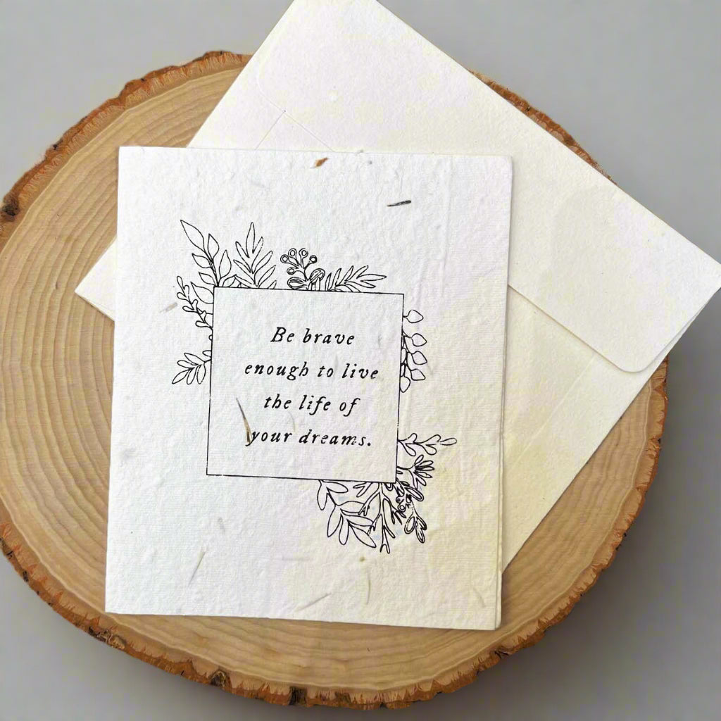 All of our greeting cards are made from recycled cotton waste. No trees are cut down. When finished, plant our cards and flowers will grow. Each order helps us plant trees.