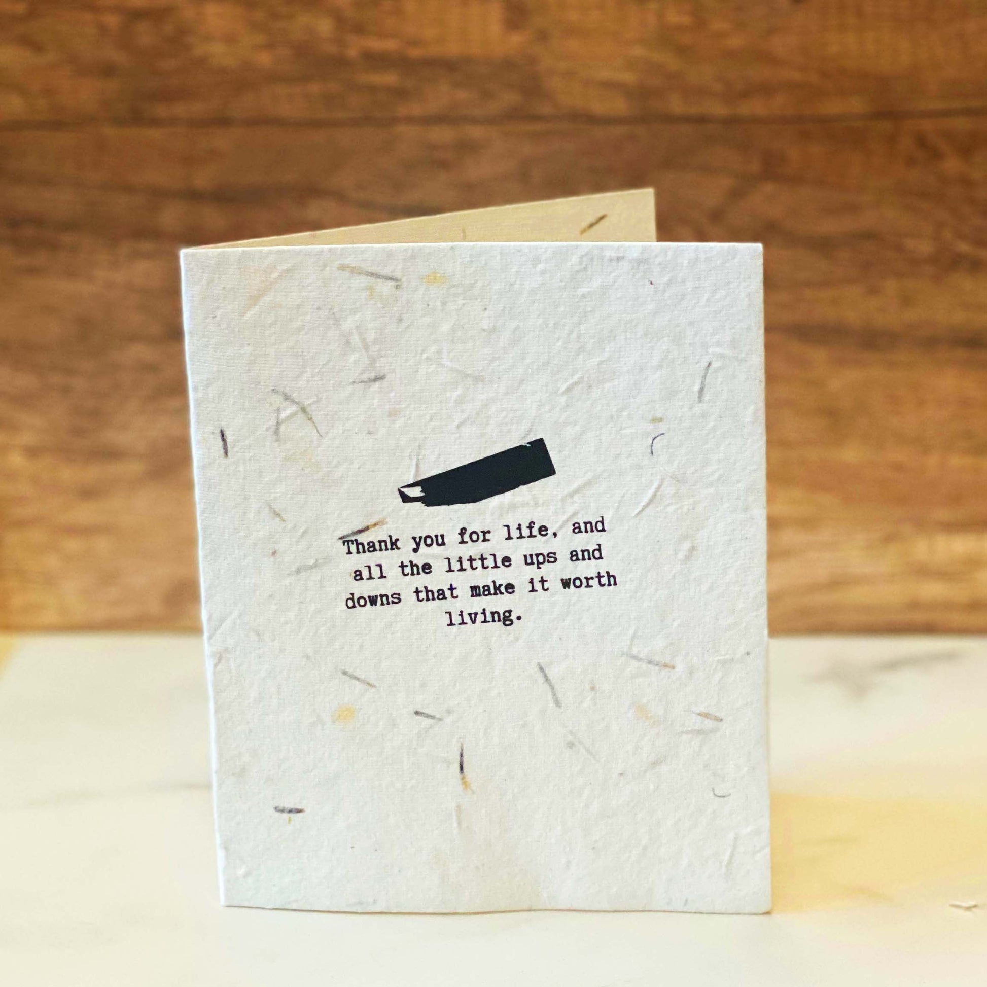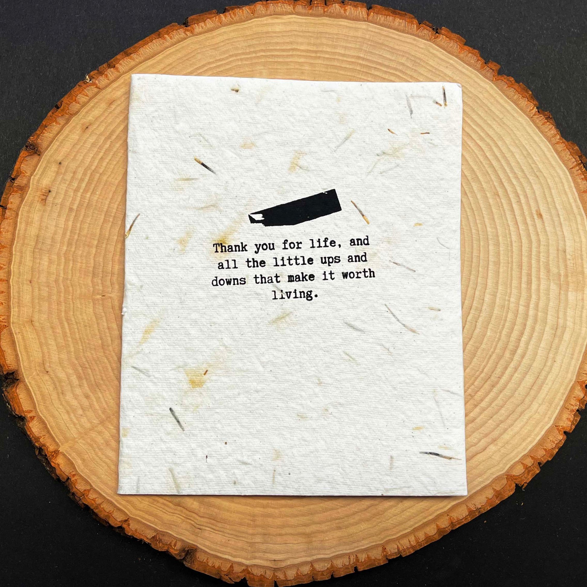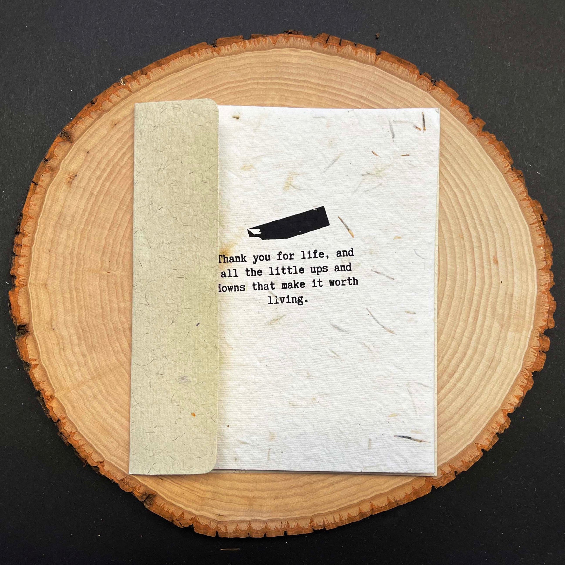 "Thank you for life, and all the little ups and downs that make it worth living."