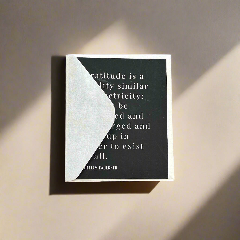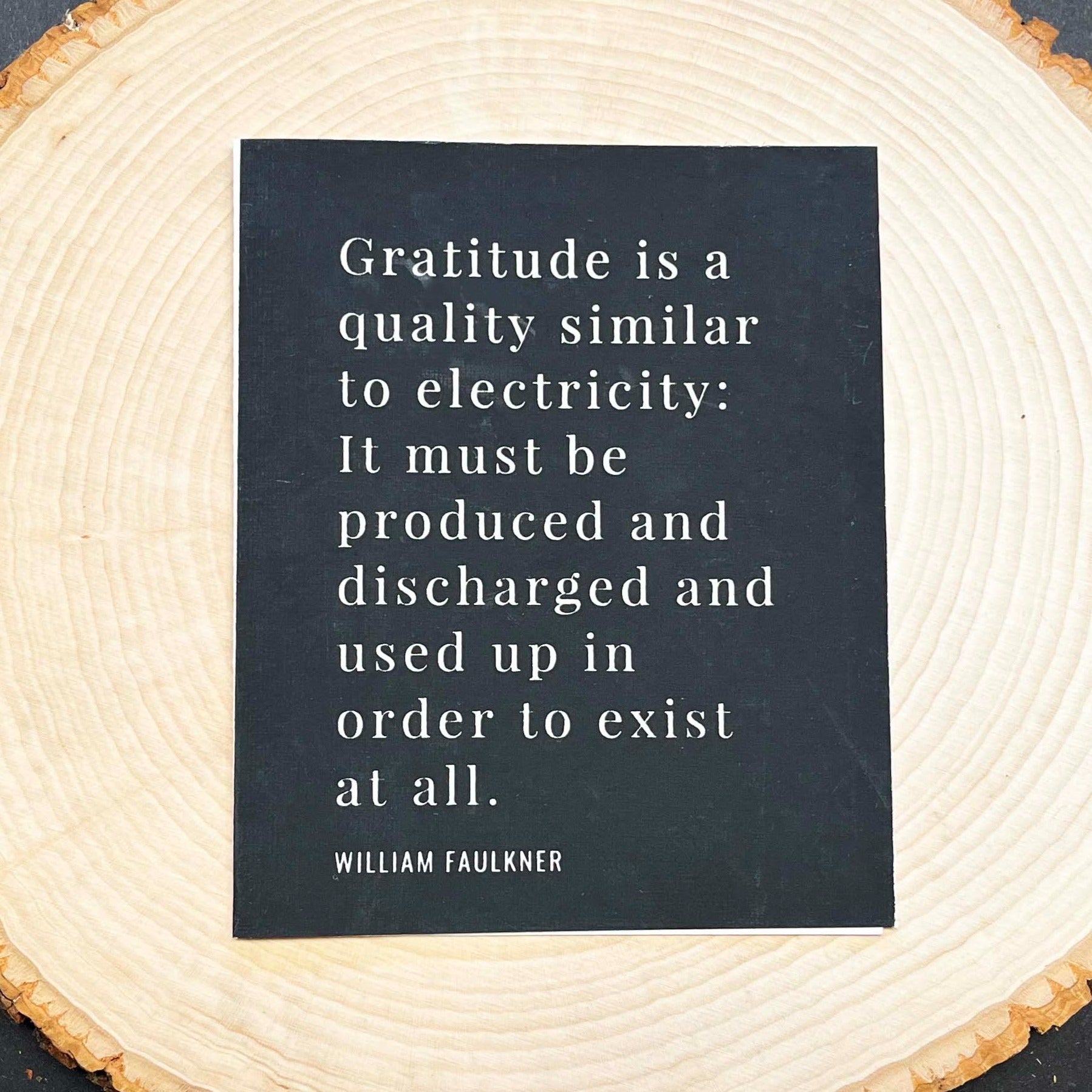 "Gratitude is a quality similar to electricity; It must be produced and discharged and used up in order to exist at all." -William Faulkner