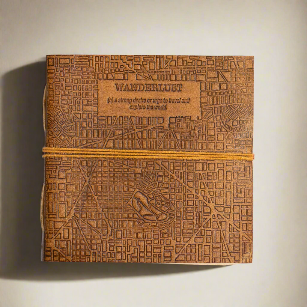 Ignite your desire for exploration with our captivating Wanderlust 7x7 Square Leather Journal. This unique notebook is designed for the intrepid traveler and the creative soul, perfectly sized and exceptionally crafted to capture your adventures.